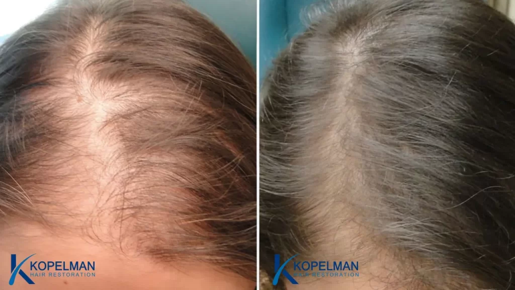 Before treatment, individuals may experience thinning hair, reduced density, and increased shedding. After several sessions, many notice improved hair thickness, reduced hair fall, and a healthier scalp.