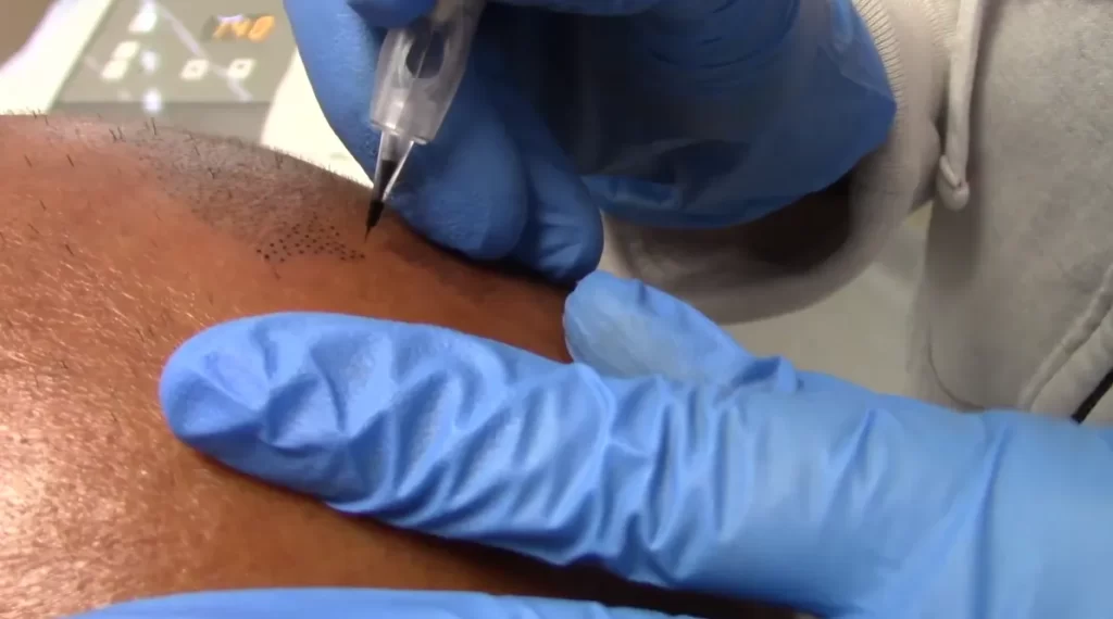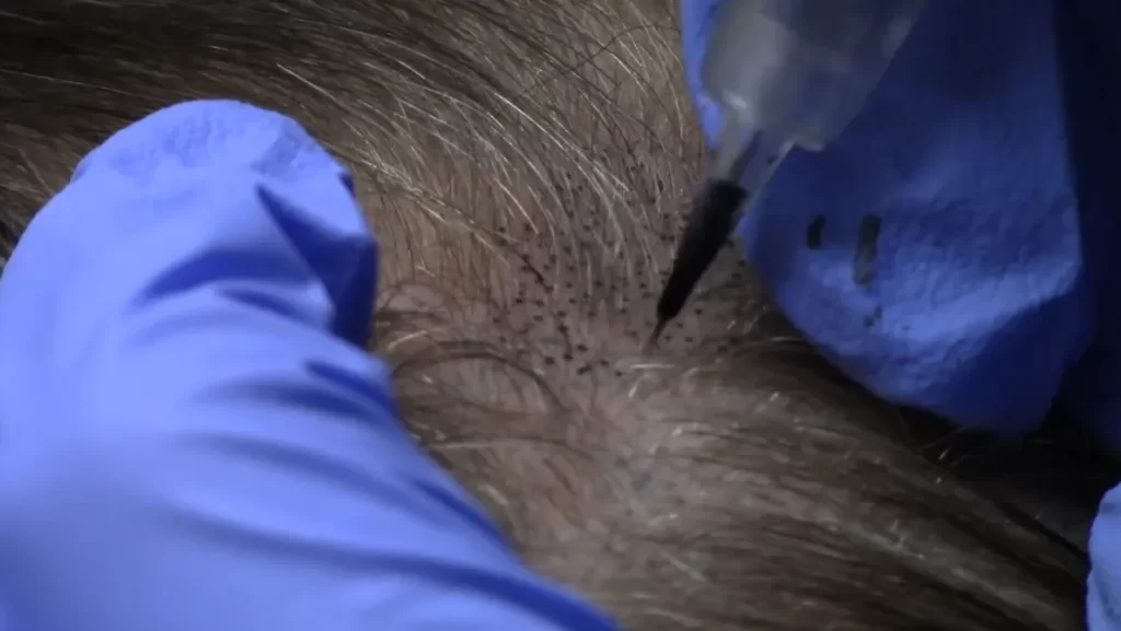During an SMP session, the technician will clean your scalp and apply a numbing agent to minimize discomfort. Using a fine microneedle, they will deposit pigments as tiny dots, mimicking the look of real hair.